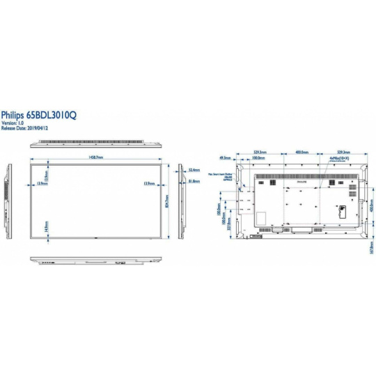 Úhlopříčka obrazovky ("):65"; Technologie TV:LED; Rozhraní:HDMI; Formát obrazovky:16:9.