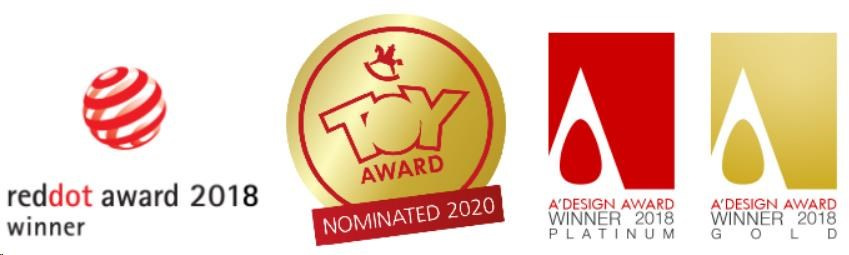 - Certifikovaný produkt s oceněním za design – Red Dot Design Award, Toy Award, A´DESIGN