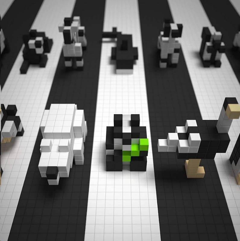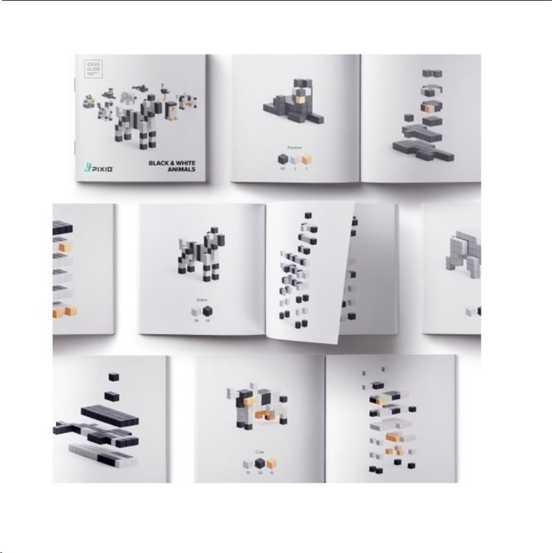 DESIGNOVÁ ŘADA PIXIO Black and White Animals obsahuje 195 bloků PIXIO ve 4 barvách. Umožní