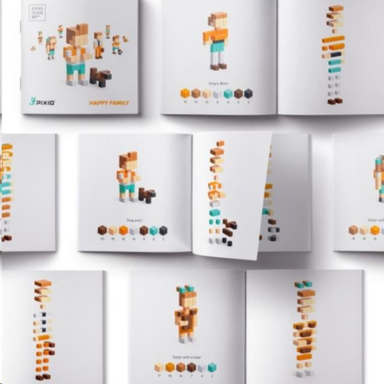 PIXIO Happy Family obsahuje 88 bloků PIXIO v 7 barvách. Umožní oživit vaše kreativní nápady a