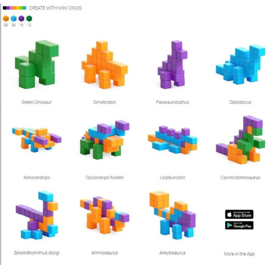 Řada PIXIO Mini Dinos obsahuje 80 bloků PIXIO ve 4 barvách. Umožní oživit vaše kreativní nápady a