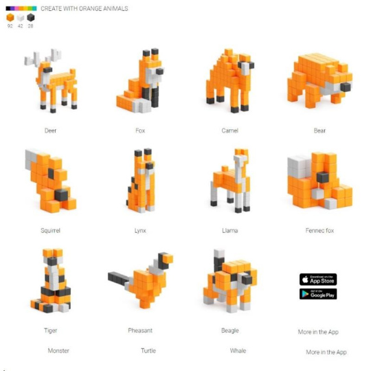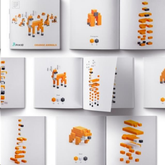 DESIGNOVÁ ŘADA PIXIO Orange Animals obsahuje 162 bloků PIXIO ve 3 barvách. Umožní oživit vaše