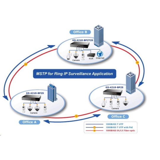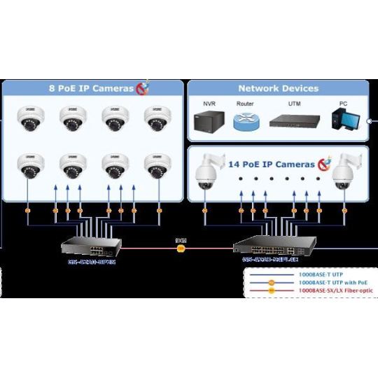 Gigabitový spravovatelný IPv4/IPv6 přepínač s PoE (power over ethernet) porty pro centralizované napájení zařízení po ethernetu jako jsou IP kamery, WiFi prvky nebo VOIP telefony. Zařízení je svým provedením vhodné pro instalaci do kancelářských nebo prezentačních prostorů. Je vhodné i pro aplikace v lokálních rozvaděčích, vzdálené připojení lze realizovat optickými porty SFP. Bezpečnou správu zajistí šifrovaná webová správa nebo SNMP protokol. Připojení koncových uživatelů lze zabezpečit ACL/MAC pravidly nebo možnou autorizací na server RADIUS/TACACS. Vlastnosti: - 8 portů 1000Base-T, Switching, Full Duplex (1000/2000 Mbps), Auto-Negotiation (10/100/1000 Mbps) - metalické porty s vestavěným PoE injektorem 802.3af, každý injektor až 30W/port; celkový max. napájený výkon do 120W - 2x SFP, 100/1000Base-X, pro instalaci optických modulů mini-GBIC s označením MFB a MGB - Auto-MDI/MDI-X, automatická detekce přímý skřížený kabel i pro 10/100Mbps - 8k MAC adres, 4,1Mb buffer - propustnost: 20Gbps sběrnice, datově 14,88Mp/s (64B) - podpora přenosu Jumbo rámců o velikosti 10KB - správa: WEB / SNMPv3 / telnet / konzole, s podporou zabezpečení SSH/SSL - plná podpora protokolů IPv4 a IPv6 - VLAN IEEE 802.1Q, až 256 skupin, až 4094 VLAN ID, protokolové VLAN, VoIP VLAN - agregace portů LACP 802.3ad, až 8 skupin - QoS 8 front, klasifikace podle provozu, váženého průměru, VLAN značky nebo 802.1p příznaku - Spanning tree protokol: STP / RSTP / MSTP - IGMPv3 Snooping, Querier, až 256 multicast skupin - zrcadlení portů-port mirroring: TX / RX / TX+RX / více portů na jeden - zabezpečení klientů: ACL (access control list), MAC statická tabulka pro autorizovaná zařízení, autorizace na RADIUS/TACACS+, DHCP snooping - ochrana proti DoS útokům - tepelná ochrana proti přehřátí - ESD ochrana proti elektrostatice do 2kV DC - rozměry: (330 x 155 x 44,5))mm; hmotnost 1,7kg - provozní teplota: 0-50°C - interní napájecí zdroj AC 100-240V/50-60Hz, vlastní příkon do 30W.