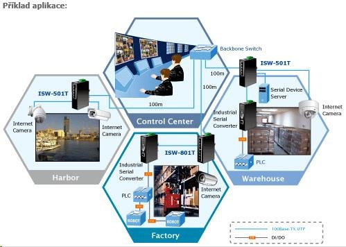 Planet ISW-501T, 5x 10/100, DIN,IP30, rozšířený teplotní rozsah -40~75 st.C Přepínače pro průmyslový Ethernet jsou určeny do náročných provozních podmínek s velkým rozsahem pracovních teplot, nejistým napájením a častými otřesy. Přepínače řady ISW se snadno instalují na standardní DIN lištu nebo přímo na zeď a umožňují nasazení dobře známé Ethernetové technologie i v průmyslovém prostředí. Stejně tak jsou vhodné pro instalace do venkovně umístěných skříní s velkým kolísáním pracovních teplot (typicky bezdrátové a MAN ISP aplikace). Vlastnosti: 5 portů 100 Base-TX, Switching, Full Duplex (100/200 Mbps), Auto-Negotiation (10/100 Mbps) 2k MAC adres automatická detekce přímý/křížený kabel na každém portu pole LED indikátorů pro diagnostiku provozu instalace na DIN lištu, montážní díl součástí instalace na zeď, montážní díl součástí krytí IP30, skříň celohliníková napájení: 12-48V DC redundantní, připojení možné ze dvou různých zdrojů (nejsou součástí balení) ochrana proti přepólování, připojení napájení na svorkovnici, umístění na spodním panelu (nepřekáží při montáži na zeď) zařízení je odolné proti pádu (IEC-60068-2-32) z výšky 75cm na všechny dopadové části zařízení je odolné proti vibracím (IEC-60068-2-6) 10-500-10Hz, 4x g, 0,5oct/min zařízení je odolné proti přetížení krátkodobému zrychlení 50x g, dlouhodobému 4x g (IEC-60068-2-27) EMI/EMS, elektromagnetická kompatibilita a slučitelnost dle CE EN-6100-4-2,3,4,5,6 elektrická bezpečnost dle CE EN-60950 pracovní teplota -40 až 75 st. C, vlhkost do 90% příkon 11W hmotnost: 438g rozměry: 135 x 87 x 32 mm.