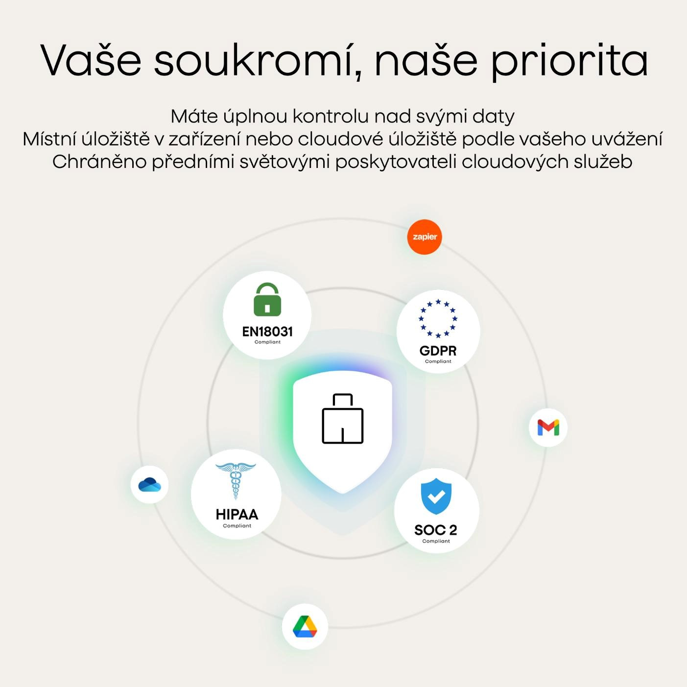 - Certifikovaný soulad s HIPAA, zákonem pro nakládání s citlivými daty ve zdravotnictví v USA