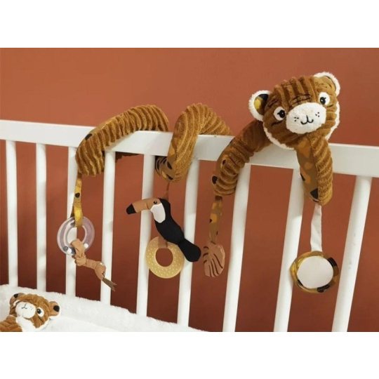 Originální spirála na postýlku, na kočárek nebo na hrazdičku, v podobě roztomilého tygra upoutá pozornost každého miminka. Úžasně heboučká spirála s chrastítkem, zrcátkem, kousátkem i s šustícím lístečkem stimuluje dětské smysly, rozvíjí jemnou motoriku a koordinací očí a rukou. Prohlédněte si originální spirálu, která vykouzlí úsměv na tváři dětem i rodičům..