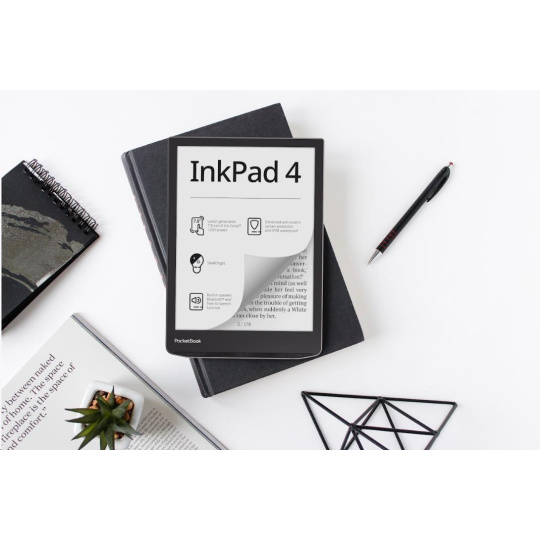 Tato funkce promění jakýkoli textový soubor v audioknihu: stačí dvě kliknutí a PocketBook InkPad 4 bude přirozeným hlasem přečítat jakoukoli knihu.