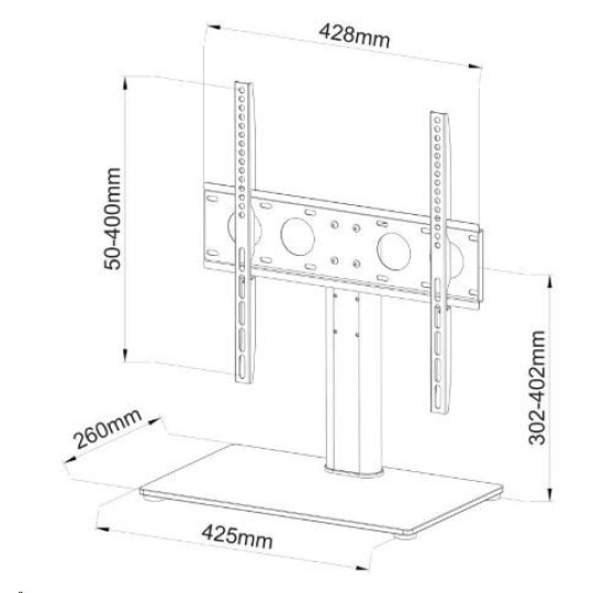 Elegantní podstavec na Tv 32-55", nastavení výšky, top kvalita, nosnost 40kg Kvalitní podstava na televizory a monitory s úhlopříčkou 32" až 55" a nosností 40kg. Podstavec o rozměrech 425mm x 260mm je vyroben z bezpečnostního skla v černém provedení o síle 8mm. Ostatní části jsou z litiny nebo ocely. Držák podporuje VESA standardy 100x100 až 400x400, má systém pro fixaci Tv. Výškové nastavení v rozmezí 302 až 402mm (po střed obrazovky). Systém pro vedení kabeláže, zabezpečovací lanko pro ukotvení k nábytku nebo ke zdi, instalační materiál. Vynikající kvalita za bezkonkurenční cenu. ErgoSolid Castor 2 - elegantní podstava na televizi nebo monitor 32 až 55 palců Technické údaje: nosnost 40kg podporuje VESA standardy 100x100 až 400x400 doporučujeme na televizory a monitory s úhlopříčkou 32" až 55" nastavení výšky 302mm až 402mm systém vedení kabeláže podstava z bezpečnostího skla o rozměrech 425mm x 260mm x 8mm fixace Tv na držák bezpečností lanko pro uchycení k nábytku nebo zdi elegantní design vynikající kvalita instalační materiál barevné provedení černé záruka 2 roky Bezpečností lanko pro uchycení k nábytku nebo ke zdi ErgoSolid Castor 2 Fixace Tv na držák podstavce ErgoSolid Castor 2 Televizní podstavec ErgoSolid Castor 2 podporuje VESA standardy: VESA 100x100 VESA 200x100 a 100x200 VESA 200x200 VESA 300x100 a 100x300 VESA 300x200 a 200x300 VESA 300x300 VESA 400x200 a 200x400 VESA 400x300 a 300x400 VESA 400x400.