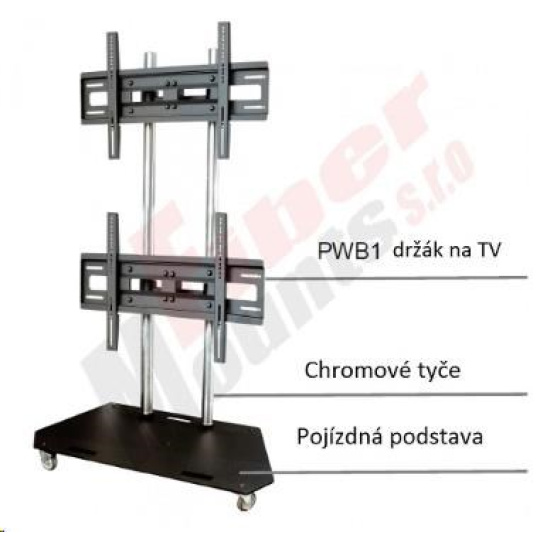 Technické údaje: •maximální zatížení stojanu: 140kg •maximální hmotnost 1 televizoru: 60kg •výška stojanu 210cm •nastavitelná výška TV •na TV a monitory 22" - 60" dle zvoleného držáku TV •pojízdný, možnost zajištění proti pojezdu •barva: podstavec černý, tyče chrom •profesionální výrobek - nejvyšší kvalita •možnost nastavení sklonu obou TV +/-18 st. •vedení kabeláže vnitřkem stojanu •nosnost podstavce 30kg - možnost umístění PC, noteboaku, DVD atd. •rozměry podstavce: 1170x500mm (ŠxH) •atest TUV •záruka 10 let.