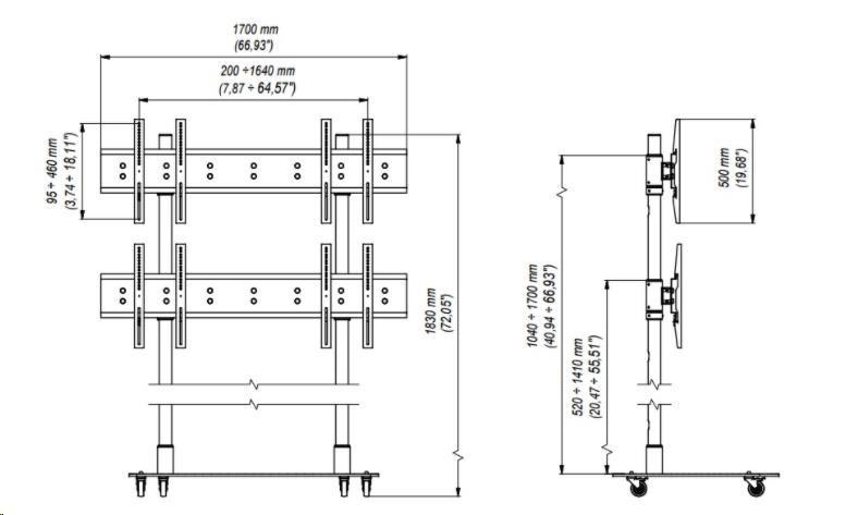 Pojízdný stojan na 4 TV 37"-55" s nosností 160kg, EDBAK TR6-22