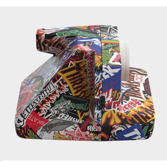 Speciální provedení jednoduchého instantního fotoaparátu Polaroid, dokončené hydro-máčecí koláží Thrasher, takže každý kus vypadá trochu jinak. Pod vlastní skořápkou se skrývá model Now Generation 3, zkonstruovaný tak, aby poskytoval ostřejší fotografie za více světelných podmínek a zároveň zachovával klasický analogový zážitek.
