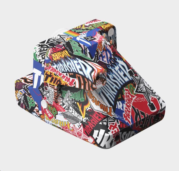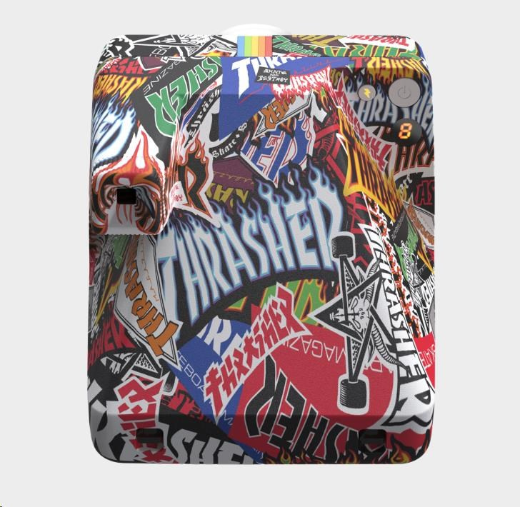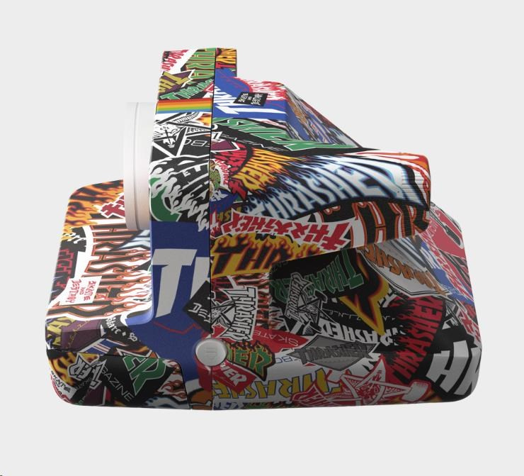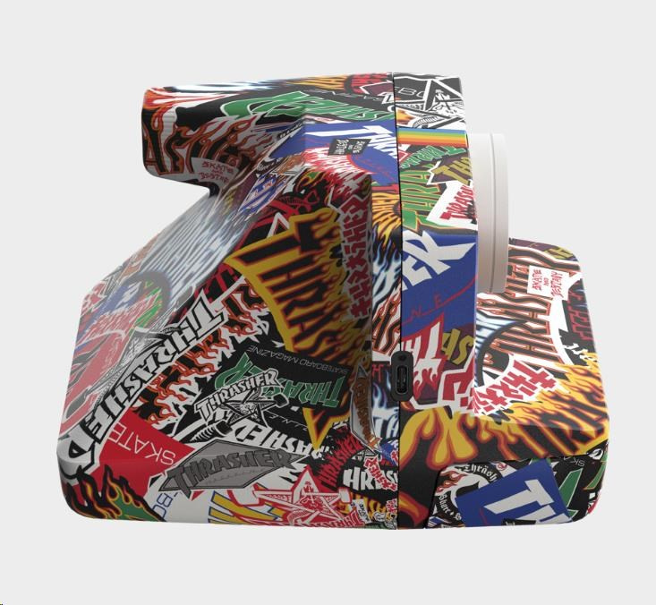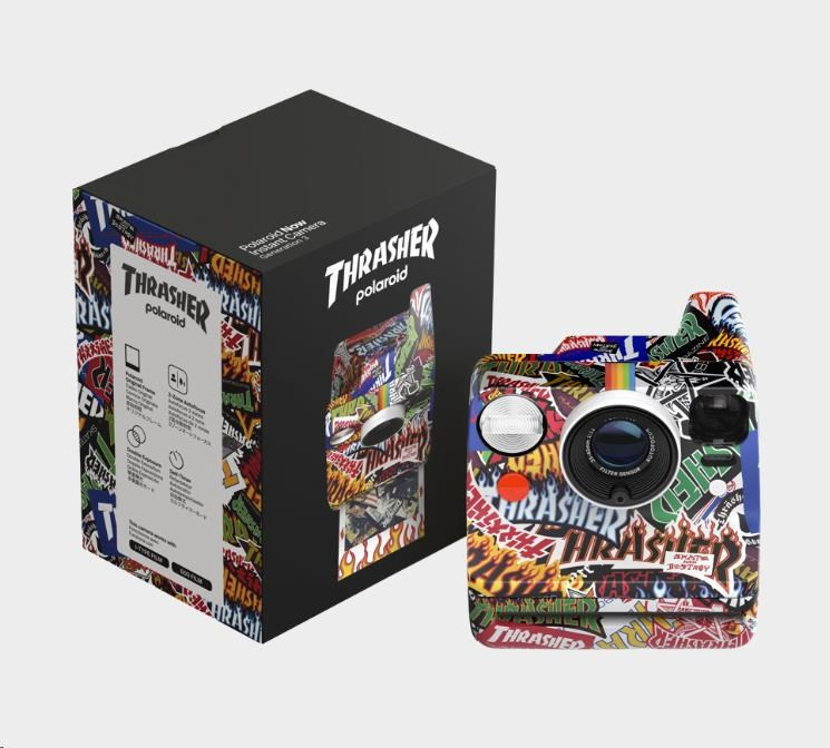 Speciální provedení jednoduchého instantního fotoaparátu Polaroid, dokončené hydro-máčecí koláží Thrasher, takže každý kus vypadá trochu jinak. Pod vlastní skořápkou se skrývá model Now Generation 3, zkonstruovaný tak, aby poskytoval ostřejší fotografie za více světelných podmínek a zároveň zachovával klasický analogový zážitek.
