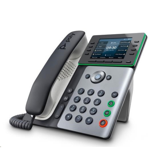 | Audio | Poly HD Voice; Technologie Poly Acoustic Clarity zajišťuje plně duplexní hovory a potlačuje akustickou ozvěnu i okolní šum; Technologie Poly Acoustic Fence potlačuje okolní hluk při použití sluchátka nebo kabelové náhlavní soupravy; Technologie Poly NoiseBlockAI odstraňuje většinu okolního hluku při používání konferenčního reproduktoru; Aplikace Poly Computer Audio Connector nainstalovaná v počítači (pouze Windows) umožňuje vybrat telefon pro zvukový vstup a výstup počítače a použít s počítačovými aplikacemi sluchátka, volitelné náhlavní soupravy a handsfree hlasitého odposlechu; Širokopásmový zvuk TIA-920, v souladu s typem 1 (plně duplexní IEEE 1329); Individuální nastavení hlasitosti s vizuální zpětnou vazbou pro každou zvukovou cestu; Detekce hlasové aktivity; Komfortní tvorba hluku; Generování tónů DTMF (RFC 2833 a v pásmu); Přenos zvukových paketů s nízkým zpožděním; Adaptivní paměti pro vyrovnání zpoždění |