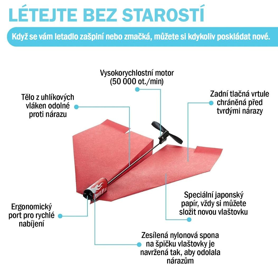 Skládání papírových vlaštovek baví každou generaci. Sada PowerUp 2.0 RED vybaví obyčejné vlaštovky vlastním elektrickým pohonem, díky kterému zůstane ve vzduchu déle než půl minuty a uletí desítky metrů.