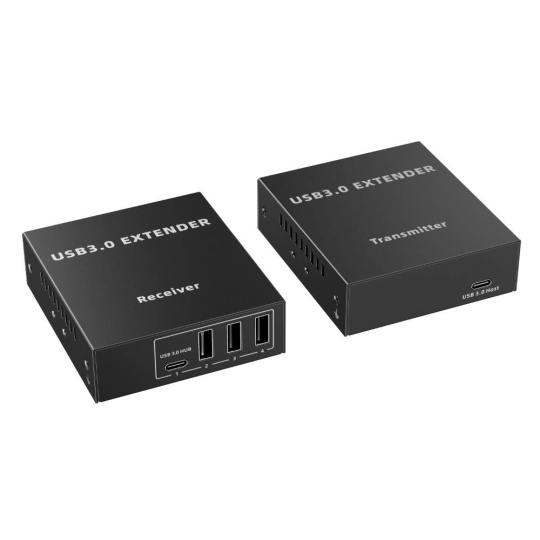 - Výstupy na přijímači: 3x USB typ A female (USB 3.0, 5Gbps) + 1x USB-C female (USB 3.0, 5Gbps)