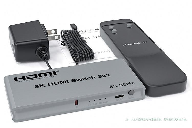 3 HDMI zařízení na vstupu sdílejí 1 výstupní monitor, projektor. Výběr vstupních zařízení: 1.automaticky, 2.stisknutím tlačítka na čele přepínače, 3.dálkovým ovladačem