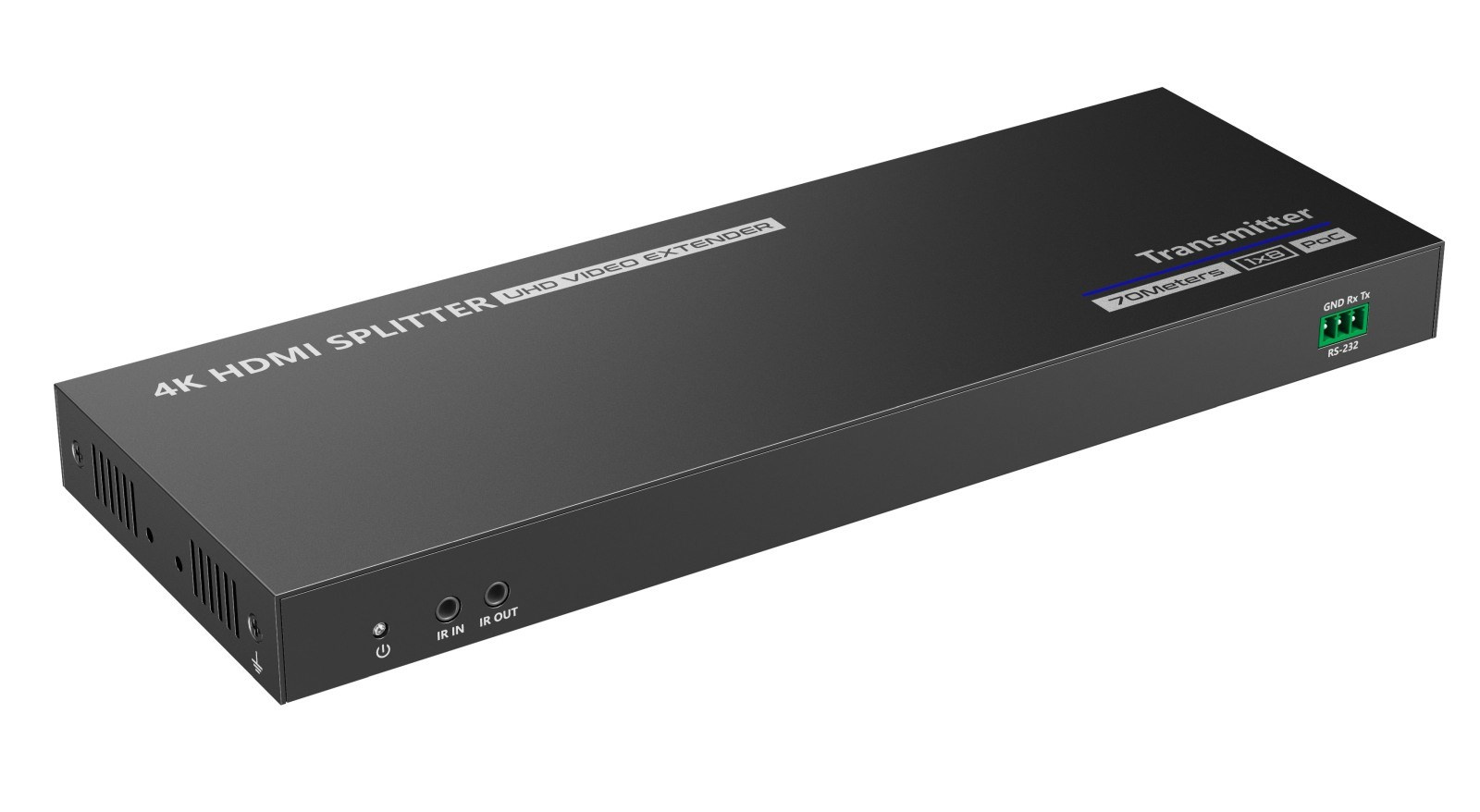 Splitter+extender umožňuje připojit dvě HDMI monitory na vzdálenost 70m a zobrazit UHD 4K@30Hz až na 70m