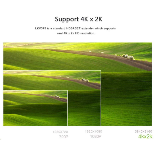 Zařízení umožňuje po síťovém kabelu přenést HDMI 4K x 2K nebo FULL HD 1080p signál až na 70m.