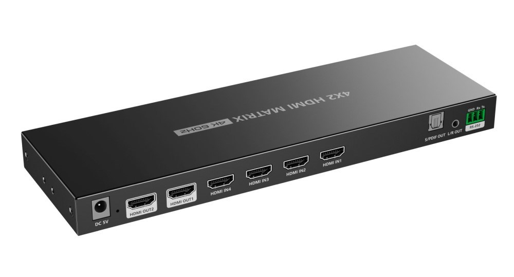 Umožní propojit více zdrojů signálu, 4 vstupy HDMI na 2 výstupy HDMI.