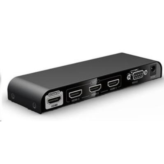 PREMIUMCORD HDMI switch 4Kx2K@60Hz 3:1 kovový s dálkovým ovladačem a napájecím adaptérem