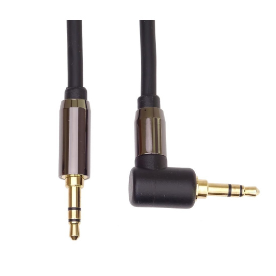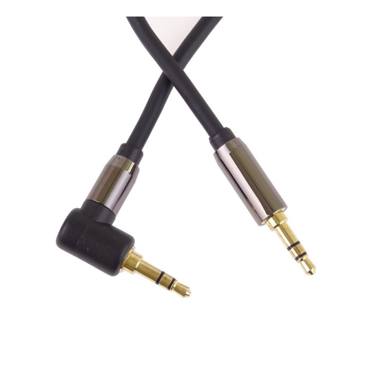 PremiumCord HQ stíněný kabel stereo Jack 3.5mm - Jack 3.5mm zahnutý 90°, 1,5m