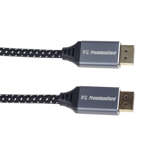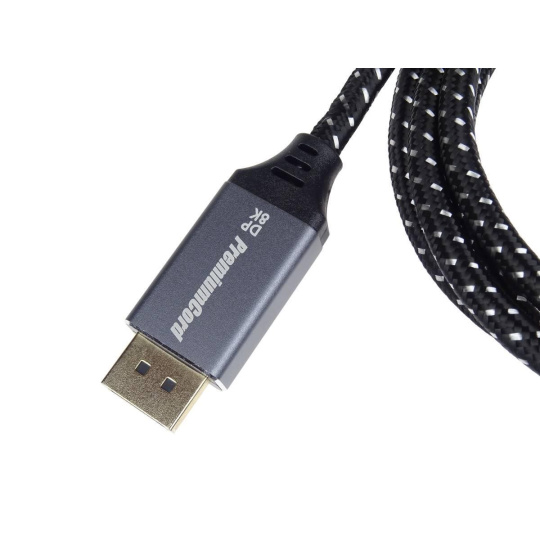 PremiumCord DisplayPort 1.4 přípojný kabel M/M pro rozlišení 8K, kovové krytky a zlacené konektory, 3m
