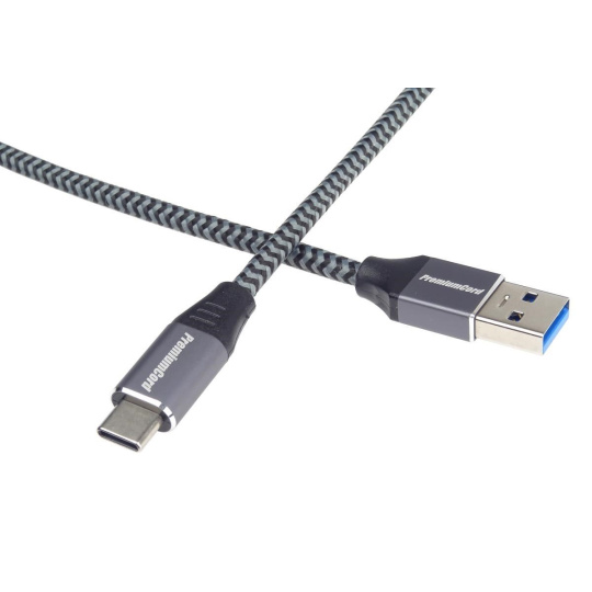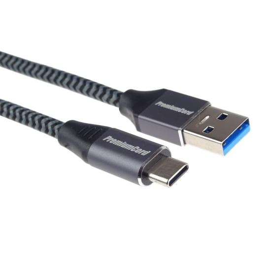 PremiumCord kabel USB-C - USB 3.0 A (USB 3.1 generation 1, 3A, 5Gbit/s) 0,5m bavlněný oplet a kovové hliníkové konektory
