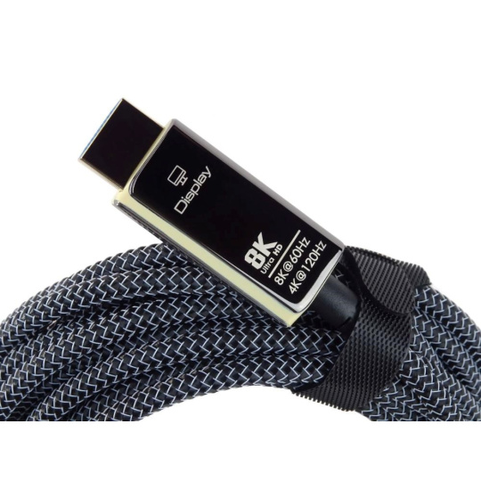 Optický HDMI 2.1 Ultra High Speed 8K@60Hz nebo 4K@120Hz kabel slouží pro spojení dvou audio/video zařízení přes moderní HDMI rozhraní, jako je např. HD-DVD/BluRay přehrávač a LCD/Plazma televizor. Kabel přenáší digitální zvuk i obraz a podporuje digitální ochranu obsahu HDCP.