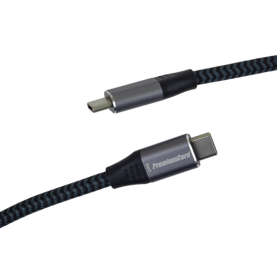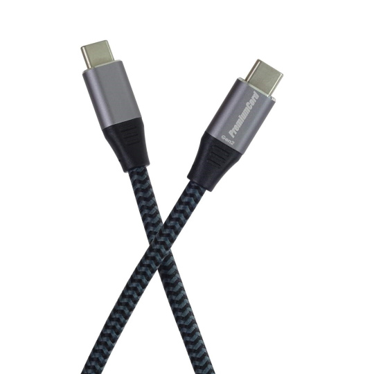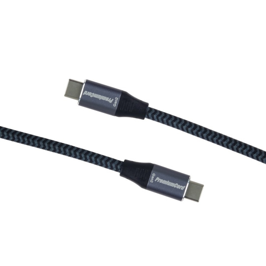 PremiumCord USB-C kabel ( USB 3.2 GEN 2x2, 5A, 100W, 20Gbit/s ) hliníkové krytky konektorů, bavlněný oplet, 3m