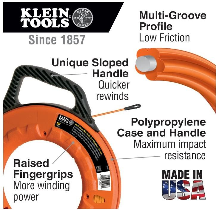 KLEIN TOOLS - protahovací pero, sklolaminátové jádro, délka 30m, průměr 4.8mm