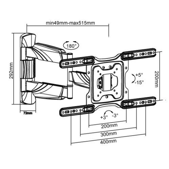 Prvotřídní držák na Tv Fiber Mounts Excelent Špičkový nástěnný držák na Tv 23-60", otočný až +/-90°, sklopný +5°/-15°, výsuvný 49-515mm, VESA 75x75 až 400x400, nosnost 35kg Hledáte kvalitní, pěkný a cenově dostupný držák na televizi? Přesně tyto vlastnosti má držák Tv Fiber Mounts Excelent, který Vás překvapí krásným dizajnem, který ukrývá opravdu kvalitní velmi pevnou a bezpečnou konstrukci pro spolehlivé zavěšení televizoru. Držák Fiber Mounts Excelent je ideální na zavěšení televizí s úhlopříčkou 23-60", naprosto skvěle zvládá i maximální zatížení 35kg bez prověšení ramene i při maximálním vysunutí 515mm. Držák umožňuje otáčení televize na obě strany, její naklápění dolů nebo nahoru, úpravu roviny obrazovky. Konstrukce je osazena dizajnovými krytky pro skryté vedení kabelů. Držák má pěknou černou barvu. V balení naleznete instalační materiál. Záruka 5 let. Spolehlivý, bezpečný, snadno polohovatelný držák na televize, který se vyznačuje skvělou kvalitou a příznačným názvem Fiber Mounts Excelent Technické údaje: nosnost 35kg podporuje VESA standardy 75x75 až 400x400 ideální pro zavěšení televizí s úhlopříčkou 23-60" výsuvný, nastavení vzdálenosti od zdi 49mm až 515mm naklápění televize dolů až o 15° nebo nahoru až o 5° otáčení televizoru do stran +/- 90° (dle velikosti Tv) korekce roviny obrazovky +/- 3° velmi pevná a bezpečná konstrukce spolehlivé zavěšení televizoru se zajištěním proti vysazení dizajnové kryty konstrukce s funkcí skrytého vedení kabeláže velmi pěkný celkový vzhled držáku snadná instalace, součástí balení je montážní materiál barevné provedení černé záruka 5 let Systém pro vedení kabeláže na televizním držáku Fiber Mounts Excelent Televizní držák Fiber Mounts Excelent podporuje VESA standardy: VESA 75x75 VESA 100x100 VESA 200x100 VESA 200x200 VESA 300x200 VESA 300x300 VESA 400x200 VESA 400x300 VESA 400x400 Držák na televize Fiber Mounts Excelent je vhodný pro spolehlivé a bezpečné zavěšení VŠECH typů, značek a úhlopříček televizí, které mají hmotnost maximálně 35kg a které podporují kterýkoliv z výše uvedených VESA standardů. Na velikosti televize nezáleží. Držák Fiber Mounts Excelent umožňuje otočení kolmo ke zdi u televizorů s šířkou maximálně 92cm. Televizory s větší šířkou (ne úhlopříčkou) otočíte o něco méně..