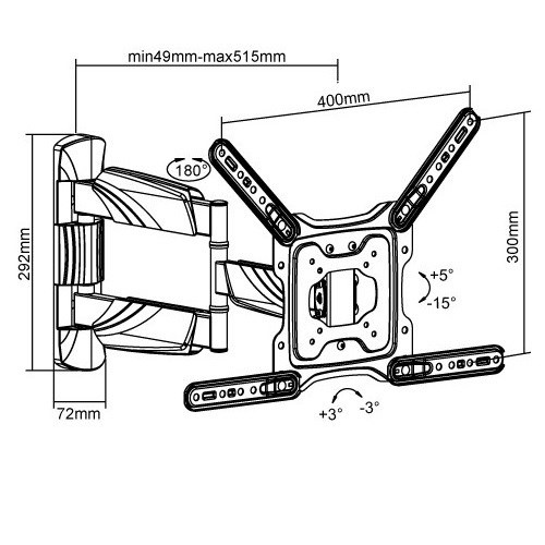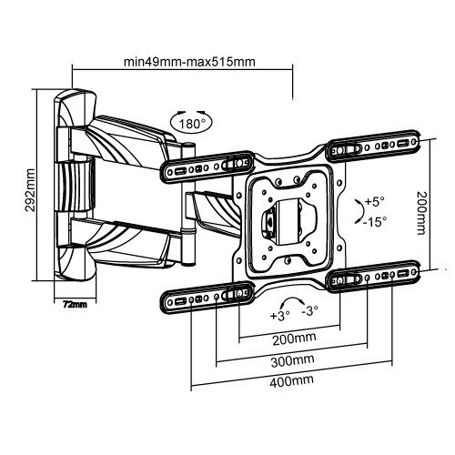 Prvotřídní držák na Tv Fiber Mounts Excelent Špičkový nástěnný držák na Tv 23-60", otočný až +/-90°, sklopný +5°/-15°, výsuvný 49-515mm, VESA 75x75 až 400x400, nosnost 35kg Hledáte kvalitní, pěkný a cenově dostupný držák na televizi? Přesně tyto vlastnosti má držák Tv Fiber Mounts Excelent, který Vás překvapí krásným dizajnem, který ukrývá opravdu kvalitní velmi pevnou a bezpečnou konstrukci pro spolehlivé zavěšení televizoru. Držák Fiber Mounts Excelent je ideální na zavěšení televizí s úhlopříčkou 23-60", naprosto skvěle zvládá i maximální zatížení 35kg bez prověšení ramene i při maximálním vysunutí 515mm. Držák umožňuje otáčení televize na obě strany, její naklápění dolů nebo nahoru, úpravu roviny obrazovky. Konstrukce je osazena dizajnovými krytky pro skryté vedení kabelů. Držák má pěknou černou barvu. V balení naleznete instalační materiál. Záruka 5 let. Spolehlivý, bezpečný, snadno polohovatelný držák na televize, který se vyznačuje skvělou kvalitou a příznačným názvem Fiber Mounts Excelent Technické údaje: nosnost 35kg podporuje VESA standardy 75x75 až 400x400 ideální pro zavěšení televizí s úhlopříčkou 23-60" výsuvný, nastavení vzdálenosti od zdi 49mm až 515mm naklápění televize dolů až o 15° nebo nahoru až o 5° otáčení televizoru do stran +/- 90° (dle velikosti Tv) korekce roviny obrazovky +/- 3° velmi pevná a bezpečná konstrukce spolehlivé zavěšení televizoru se zajištěním proti vysazení dizajnové kryty konstrukce s funkcí skrytého vedení kabeláže velmi pěkný celkový vzhled držáku snadná instalace, součástí balení je montážní materiál barevné provedení černé záruka 5 let Systém pro vedení kabeláže na televizním držáku Fiber Mounts Excelent Televizní držák Fiber Mounts Excelent podporuje VESA standardy: VESA 75x75 VESA 100x100 VESA 200x100 VESA 200x200 VESA 300x200 VESA 300x300 VESA 400x200 VESA 400x300 VESA 400x400 Držák na televize Fiber Mounts Excelent je vhodný pro spolehlivé a bezpečné zavěšení VŠECH typů, značek a úhlopříček televizí, které mají hmotnost maximálně 35kg a které podporují kterýkoliv z výše uvedených VESA standardů. Na velikosti televize nezáleží. Držák Fiber Mounts Excelent umožňuje otočení kolmo ke zdi u televizorů s šířkou maximálně 92cm. Televizory s větší šířkou (ne úhlopříčkou) otočíte o něco méně..