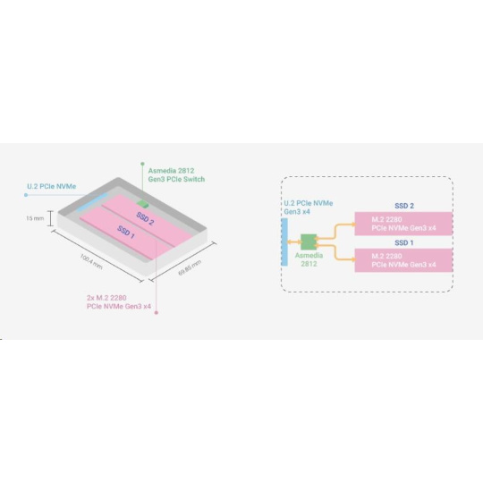 QNAP QDA-U2MP diskový adaptér 2x M.2 PCIe NVMe SSD do U.2 PCIe NVMe SSD