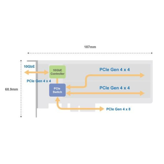 PCIe Gen4 rozšiřující karta s 2x M.2 NVMe SSD sloty a 1x 10GbE portem
