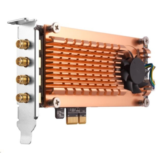 Model QWA-AC2600 je 2,4/5GHz bezdrátový adaptér typu DBDC (Dual Band Dual Concurrent), 4 x 4 MU-MIMO (více uživatelů MIMO), nízkoprofilový PCI Express (PCIe) 2.0 x1 se dvěma NIC Qualcomm QCA9984, který podporuje až 2533 Mb/s (800 Mb/s pro IEEE 802.11n (2,4 GHz) a 1733 Mb/s pro IEEE 802.11ac (5 GHz)). Model QWA-AC2600 lze používat jako přístupový bod nebo základní stanici s počítačem se systémem Ubuntu/Linux nebo se zařízením QNAP NAS. Díky kombinaci vyšší kompatibility 802.11n a rychlejšího připojení 802.11ac model QWA-AC2600 umožňuje univerzální aplikace včetně bezdrátových sítí LAN na pracovišti a zavedení Internetu věcí (IoT) v terénu. Model QWA-AC2600 může z vašeho počítače se systémem Ubuntu/Linux nebo zařízení QNAP NAS udělat bezdrátový přístupový bod/základní stanici pro další bezdrátová zařízení, která budou přímo přistupovat k uloženým datům. Model QWA-AC2600 je vybaven funkcí 2,4/5GHz DBDC a lze jej nakonfigurovat pro využívání dvou bezdrátových sítí pro posílení výkonu. Pro jeden počítač se systémem Ubuntu/Linux nebo zařízení QNAP NAS lze nainstalovat více sad modelu QWA-AC2600, aby bylo možné flexibilnější zavádění a rozšíření aplikací bezdrátové sítě vyžadující zabezpečení, soukromí a vysoký výkon.