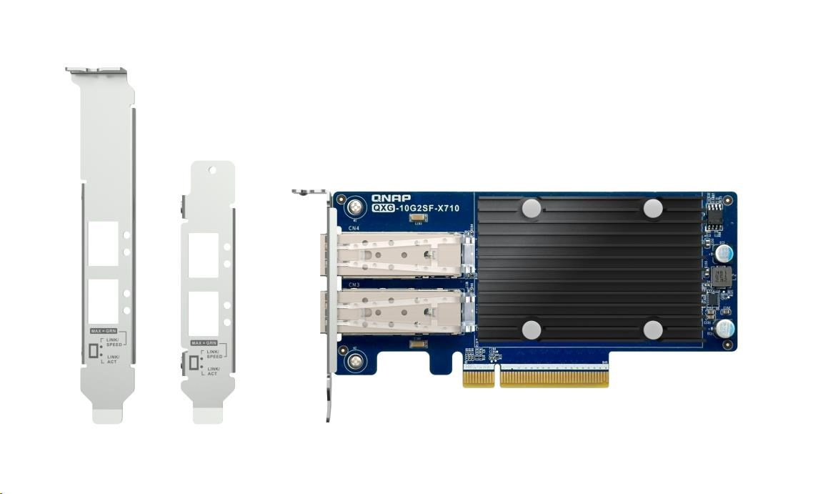 | Držák | Low-profile bracket pre-installed; full-height and specialized (for selected QNAP NAS) brackets are bundled |