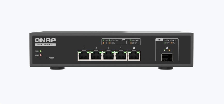 QNAP switch QSW-L3205-1C4T (4x10GbE,1x10GbE/SFP+combo,fanless)
