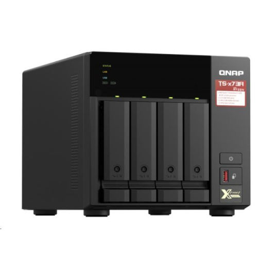 Disponuje čtyřjádrovým procesorem AMD Ryzen™ řady V1000 V1500B, který poskytuje vysoký výkon systému díky až čtyřem jádrům / 8 vláknům a Turbo Core až 2,2 GHz. Zařízení TS-473A disponuje dvěma porty 2,5GbE RJ45 a dva sloty PCIe Gen 3, abyste mohli flexibilně nasazovat sítě 5GbE/10GbE. Dva sloty M.2 NVMe SSD pro technologii Qtier a SSD Cache umožňují neustálou optimalizaci úložiště. Zařízení TS-473A podporuje systémy QTS a QuTS hero, což uživatelům umožňuje flexibilně přepínat operační systém na základě jejich požadavků.