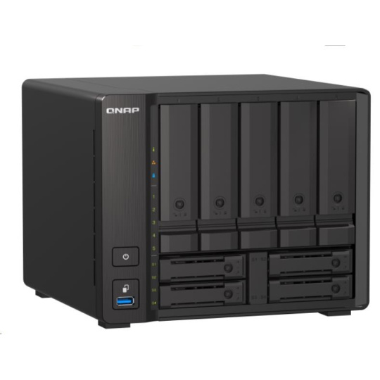 | Pozice pro diskové jednotky | 5 x 3,5" + 4 x 2,5" Systém se dodává bez HDD/SSD. Seznam kompatibilních disků HDD/SSD najdete na stránce https://www.qnap.com/compatibility/ |