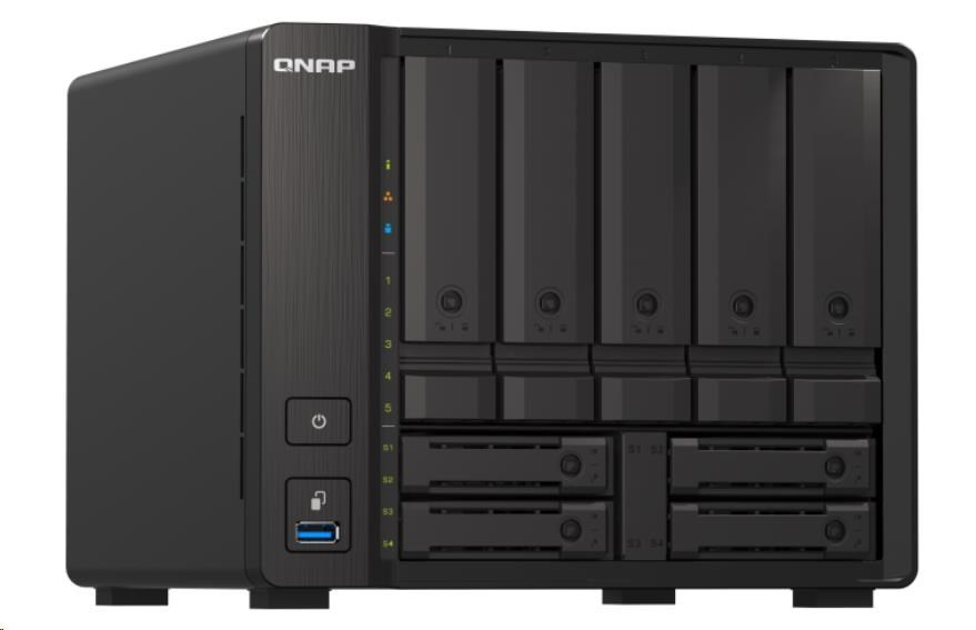 | Pozice pro diskové jednotky | 5 x 3,5" + 4 x 2,5" Systém se dodává bez HDD/SSD. Seznam kompatibilních disků HDD/SSD najdete na stránce https://www.qnap.com/compatibility/ |