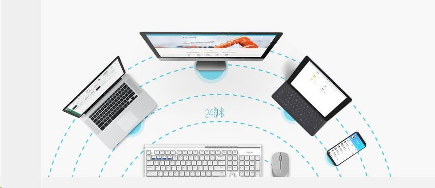 Inteligentní přepínání mezi Bluetooth 3.0, 4.0 a 2.4G zajišťuje stabilní připojení bezdrátového přenosu. I nadále můžete používat myš bez ohledu na nedostatek USB portu nebo při ztrátě přijímače.