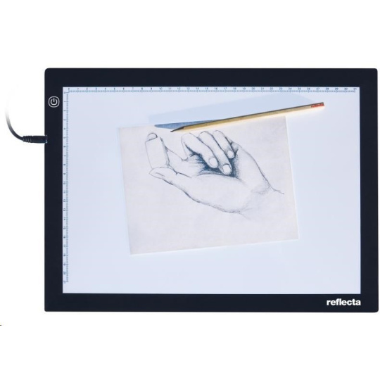 Prosvětlovací panel s moderní SuperSlim LED technologií, prosvětlovací plocha 21x31cm s měřítkem v cm na okraji plochy, plynulá regulace výkonu, dotykové ovládání, síťový zdroj AC/DC 12V/8W - 3,5mm Jack, životnost LED 50.000h. Rozměry 36x27x0,8cm, hmotnost 900g..