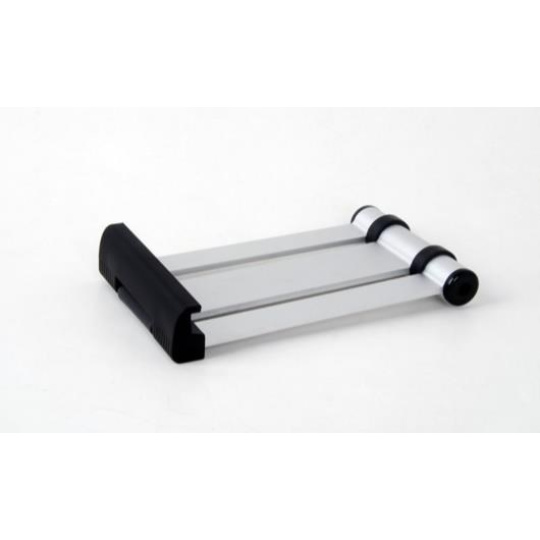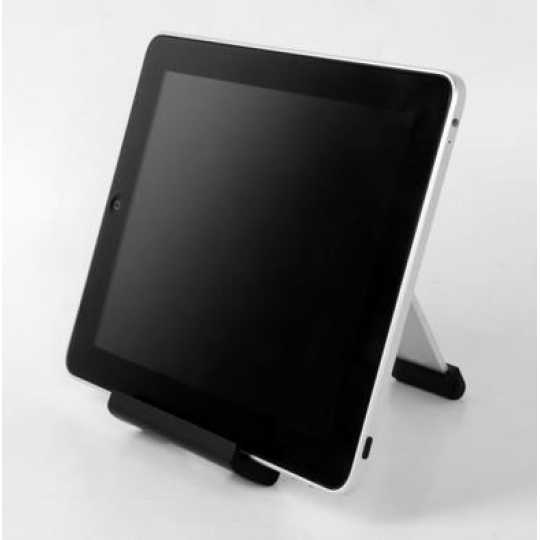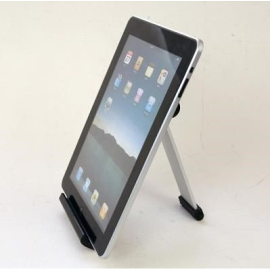 Stojánek pro tablety 7-11" v horizontální i vertikální poloze na stůl. Plynule nastavitelný sklon, výklopný mechanizmus pro rychlou instalaci, robustní kombinace hliníku a černého plastu, skladný pro transport, opření tabletu na spodní hraně, sříbrný / černý..