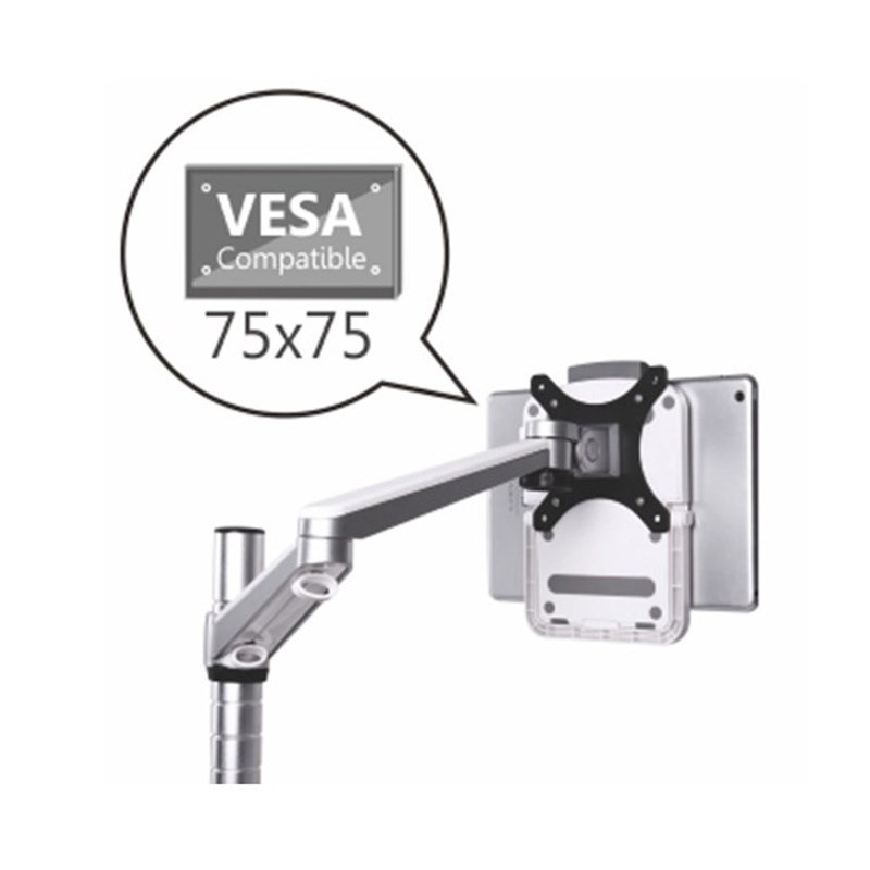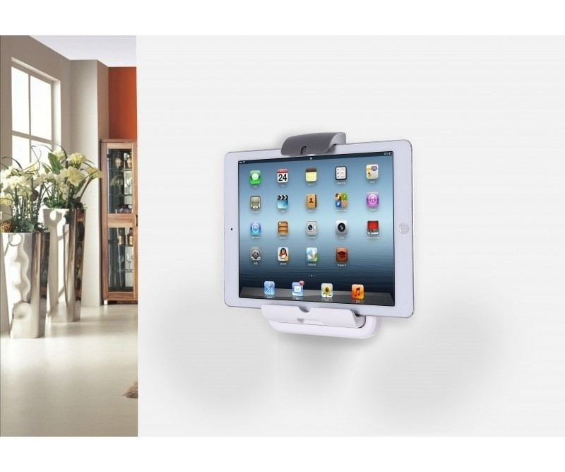 Stojánek pro tablety 7-11" v horizontální i vertikální poloze na zeď a kovovou plochu. 4x magnety a 2x vruty pro fixní uchycení, široká fixace tabletu ze dvou stran, lehké plastové provedení, šedý / bílý..