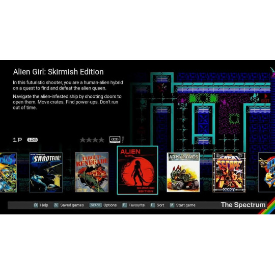 48 zabudovaných her včetně Manic Miner, The Hobbit a Head Over Heels