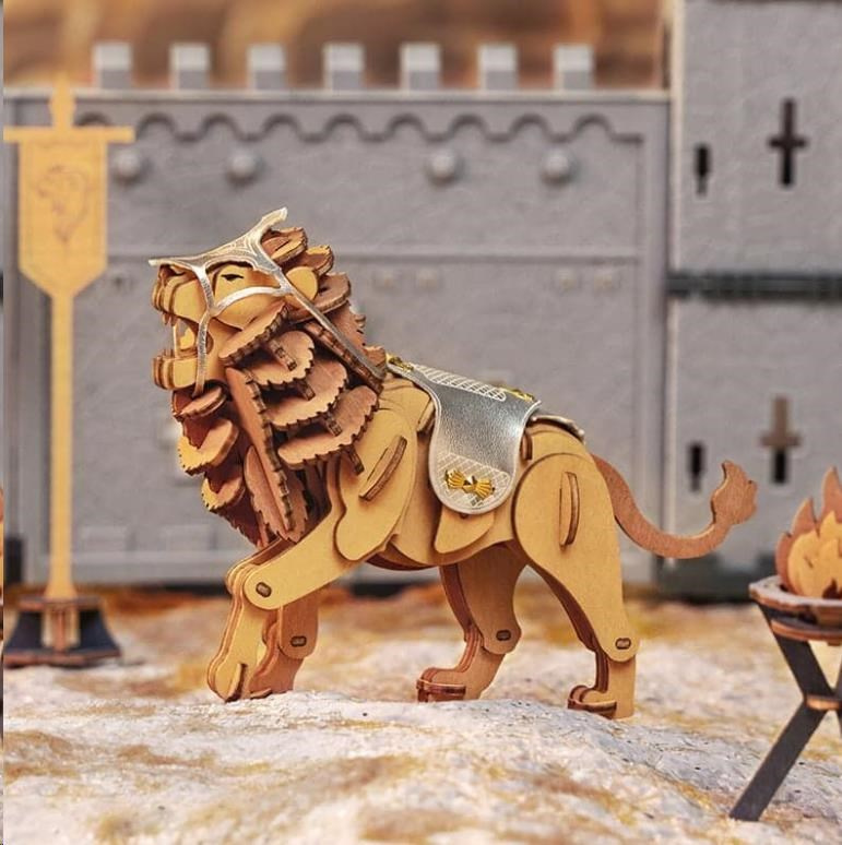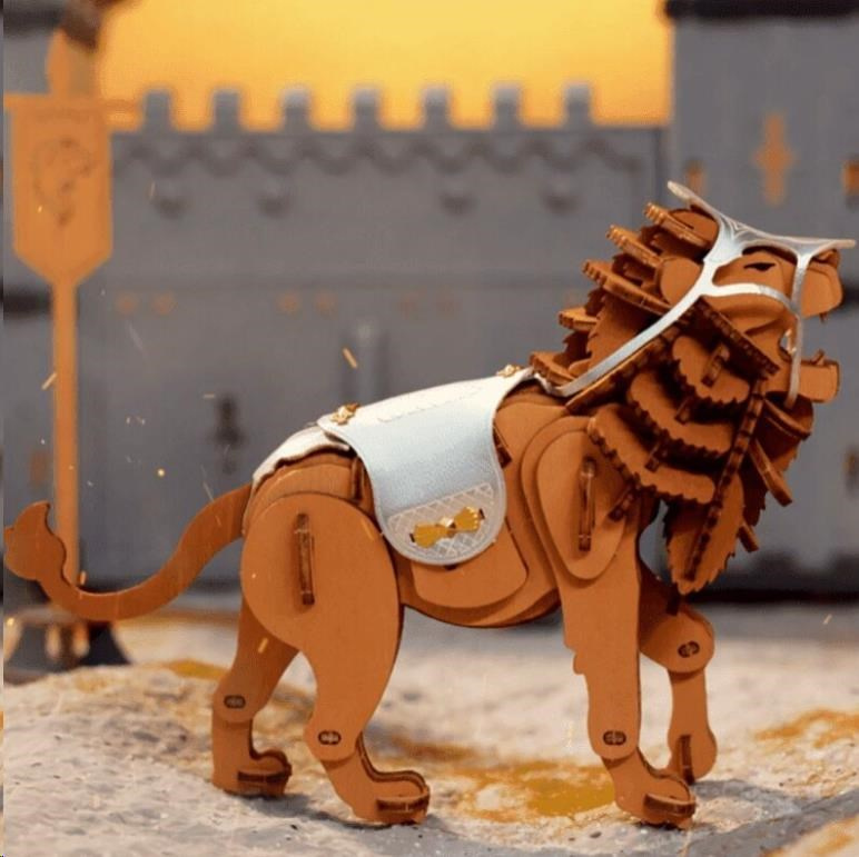 RoboTime 3D Dřevěné puzzle Bojovný lev - Warior Lion