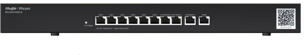 Registrace dealerské ceny: https://docs.google.com/forms/d/1sWwsswsbBk36eZx4CJrfl47qUvrORQyYz7kMjrt2f_c/prefill Popis produktu Ruijie RG-EG310GH-E je kabelový Gigabitový router do 19" racku s dostatečným VPN výkonem pro obsloužení poboček a vzdáleně pracujících pracovníků v rámci firmy. Bezpečný a spolehlivý router s vlastním webovým managementem, možností správy přes Ruijie Cloud odkudkoliv, blokování obsahu podle typu aplikace, inteligentní Multi-WAN load balancing s možností využít až 4 WAN porty zároveň. Router nabízí 1 Gigabitovými WAN port, 6x Gigabit LAN, 3 Gigabitový LAN/WAN porty a celkový výkon v NATu 1.5 Gbps. Router pro přístup do lokální sítě umožňuje i několik možností VPN serverů a to konkrétně: IPsec, PPTP, L2TP a OpenVPN. Limity VPN • IPsec: 230 Mbps, max. 64 tunelů • L2TP: 640 Mbps, max. 64 tunelů • OpenVPN: 100 Mbps, max. 64 tunelů Obsah balení • Zařízení • Napájecí kabel • Úchyty do racku • Racková sada Technické parametry Konektory a rozhraní Rychlosti WAN:(1) 10/100/1000Mbps Možnost více WAN:Ano Rychlost LAN:(6) 10/100/1000Mbps + (3) 10/100/1000Mbps LAN/WAN Gigabit LAN:Ano Napájení Typ napájení:Ze sítě (230V) Max. spotřeba energie [W]:15 Napájení přes konektor/svorkovnici:230V AC Fyzické charakteristiky Provedení:Rackmount Ventilátory:Bez ventilátoru Šasi:Kovové Tlačítka:Reset Provozní teplota [°C]:0 až 40 Šířka [mm]:440 Výška [mm]:44 Hloubka [mm]:200 Hardware Frekvence CPU [MHz]:1350 Počet CPU jader:2 Obecné Propustnost NAT [Mb/s]:1500 Propustnost VPN IPsec VPN [Mb/s]:230 Software Podporované VPN:PPTP, L2TP, IPSec, OpenVPN Web management:Ano Management:Webové rozhraní, Ruijie cloud Podpora IPv6:Ano Výchozí IP adresa:192.168.110.1 Výchozí jméno a heslo:Nastavuje se při prvním spuštění.