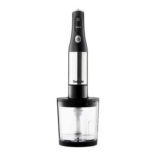 Salente Mixxo přichází do vaší kuchyně i s bohatým příslušenstvím: využívat můžete šlehací nástavec s nerezovou metličkou, mixovací nádobku o objemu 600 ml (s odměrnými ryskami po 100 ml) a taky sekáček s objemem 500 ml, který je vybaven nerezovými noži a silikonovou protiskluzovou podložkou. Pořízením tohoto všestranného mixéru zkrátka získáte kompletní vybavení, které posune vaše gastronomické kouzlení o úroveň výš.