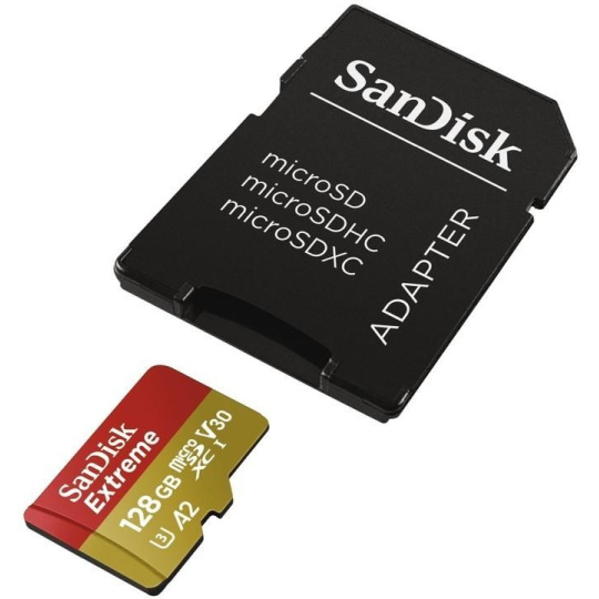 SanDisk micro SDXC karta 128GB Extreme Action Cams and Drones (190 MB/s Class 10, UHS-I U3 V30) + adaptér