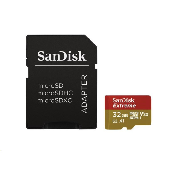 SanDisk MicroSDHC karta 32GB Extreme (100MB/s, Class 10, UHS-I U3 V30) + adaptér